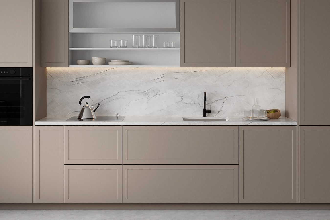 od korpusa, (npr. Za korpus širine 600 mm, vrata su 597 mm, a za korpus visine 720mm, vrata su 717mm)
