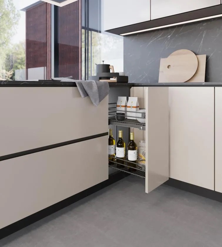 Kabineti kod kojih je naznačen dodatni okov (izvlačne košare, kutne košare, ocjeđivači za tanjure,…) u svome pakiranju sadrže i imenovani okov. Sva bušenja za njih su napravljena u tvornici radi lakšeg i sigurnijeg sastavljanja.