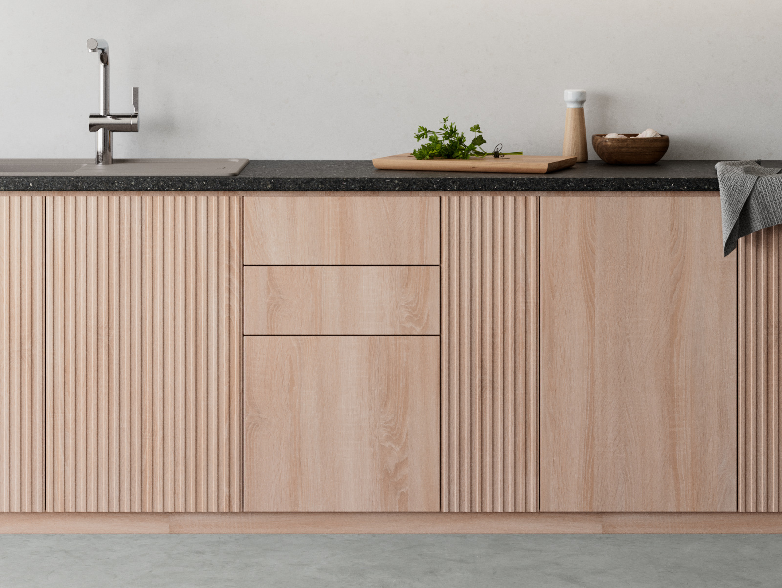 Iznad 60°C folija se deformira. Već kod planiranja molimo vas uzmite ovo u obzir. Ako vratnica/fronta može doći u dodir sa intenzivnom toplinom, to može dovesti do otpadanja ili deformiranja folije. Stoga kod ugradnje preporučujemo korištenje termoodvodne ploče (kraj pećnice ili nekog drugog izvora velike temperature). U slučaju naknadne narudžbe moguća su minimalna odstupanja u nijansi. Molimo vas uzmite to u obzir.