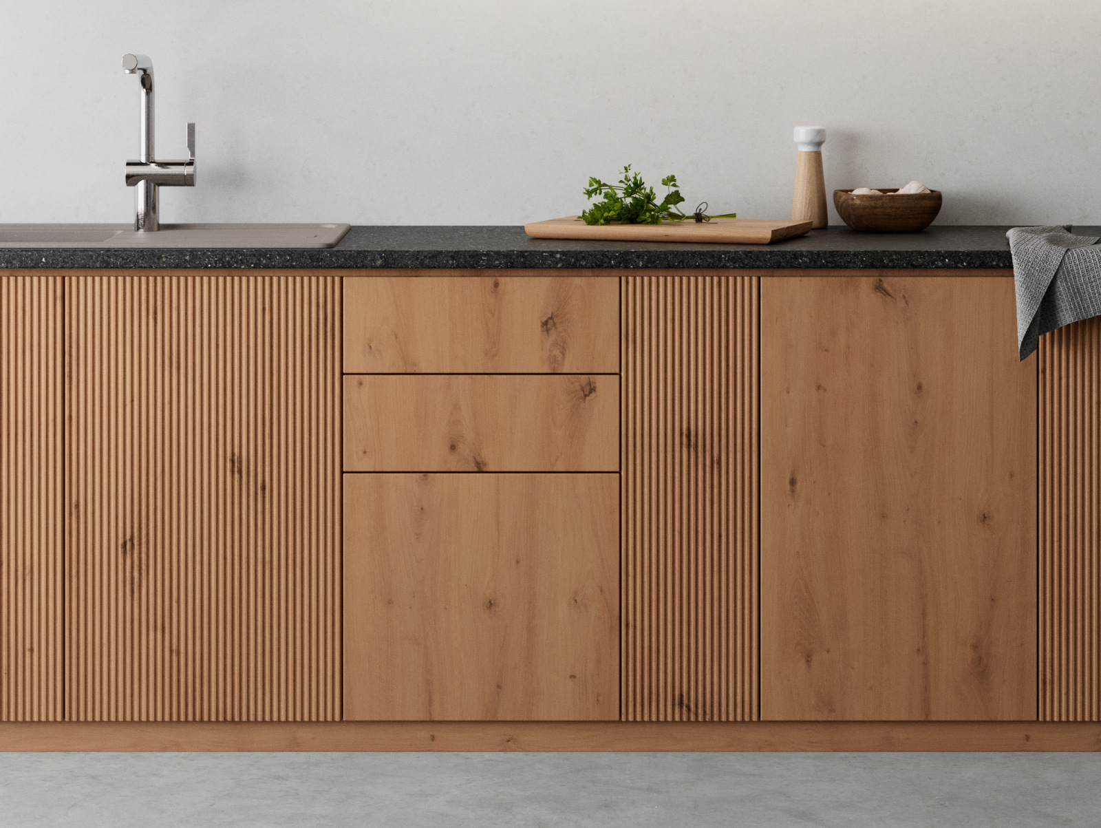 Iznad 60°C folija se deformira. Već kod planiranja molimo vas uzmite ovo u obzir. Ako vratnica/fronta može doći u dodir sa intenzivnom toplinom, to može dovesti do otpadanja ili deformiranja folije. Stoga kod ugradnje preporučujemo korištenje termoodvodne ploče (kraj pećnice ili nekog drugog izvora velike temperature). U slučaju naknadne narudžbe moguća su minimalna odstupanja u nijansi. Molimo vas uzmite to u obzir.